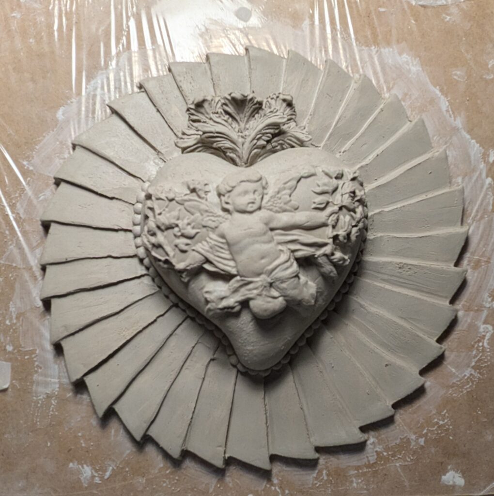 Lately, she has been exploring the integration of sculpture and painting by creating highly detailed, ornamental frames that are sculpted, kiln-fired, and then painted on. These hybrid pieces blur the line between object and image, merging two- and three-dimensional art forms into a singular visual experience. This innovative body of work reflects her desire to push traditional boundaries, reimagining how classical aesthetics can function in a contemporary context.