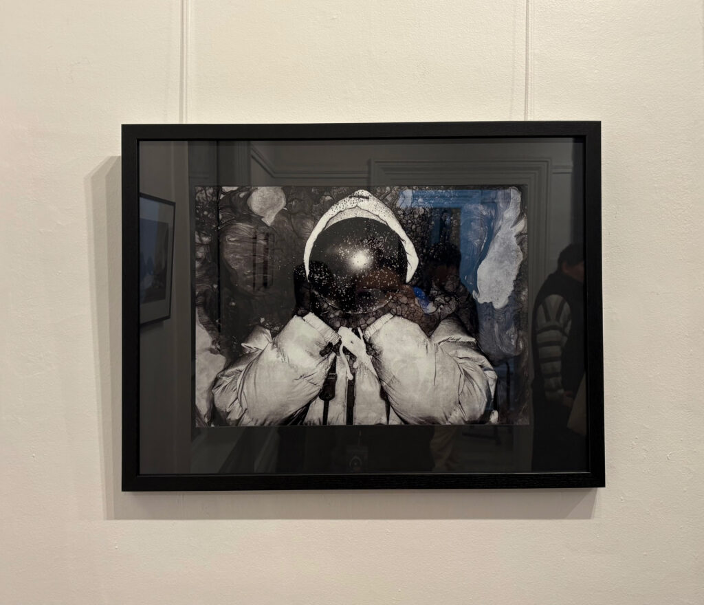 “Balloon Face II” is an image from my ongoing series “Memory Does Not Belong Here”, which began during a prolonged period of adjustment after moving. Although daily life appeared stable, it remained internally unresolved. The image presents a figure whose face is partially obscured by an inflated balloon. The gesture is ordinary yet slightly misplaced, creating a quiet, surreal tension. Soft, fragile, and out of scale, the balloon disrupts the logic of the body and suspends the figure between visibility and concealment. This ambiguity reflects an in-between state, where familiar reference points loosen, and meaning does not fully settle. Rather than suggesting movement or arrival, the image remains with a moment of pause, allowing uncertainty to persist. The work is made using the mordançage process, in which the photographic surface is chemically lifted and eroded. This material instability echoes the image’s fragility, mirroring how memory and identity behave in transition—fragmented, uneven, and resistant to closure.