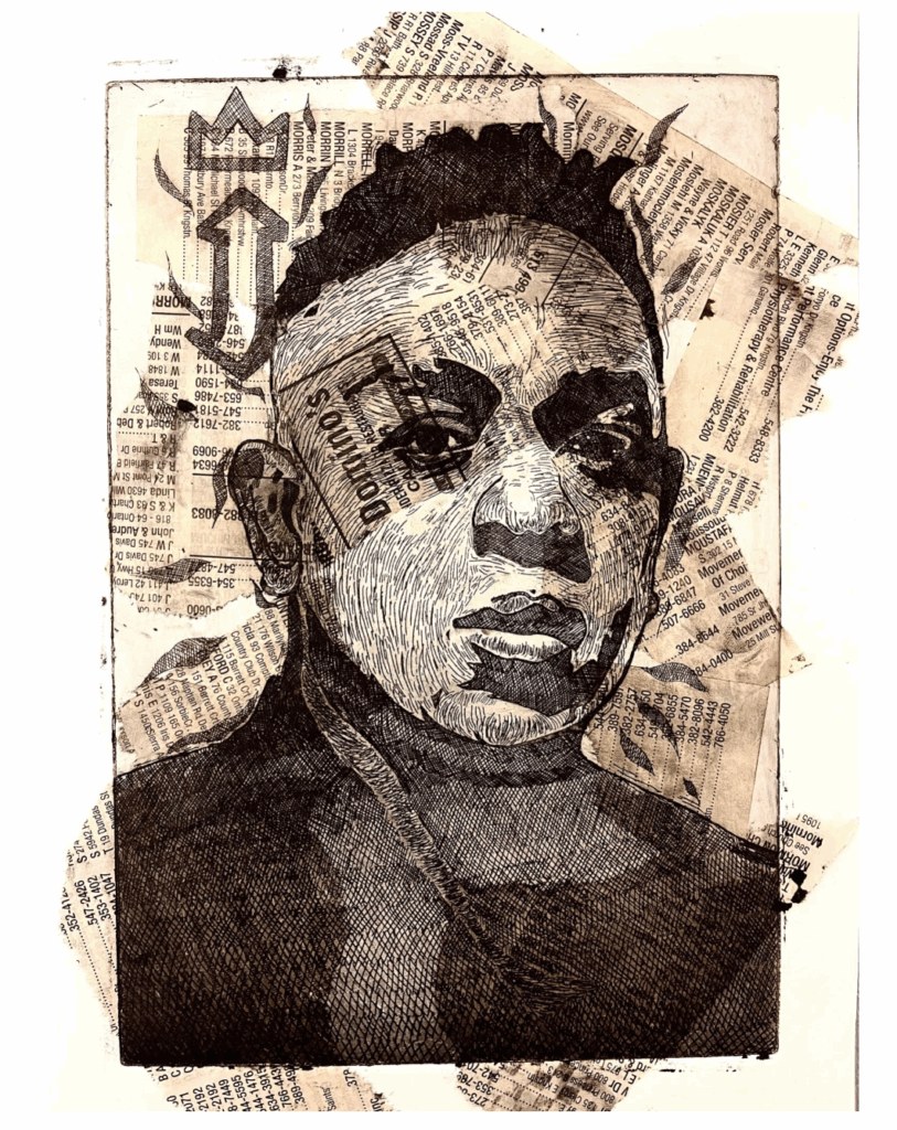 Bince is also trained in traditional and digital animation, their works are a melting pot of style between graphic and realism, all while highlighting cultural movements within their current and past environments.